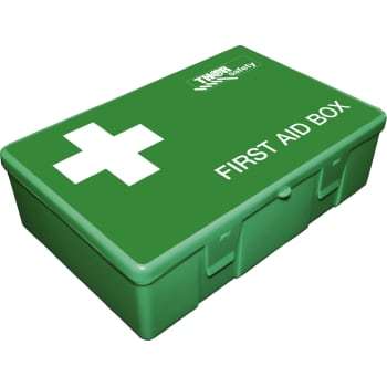 Førstehjælpskasse indeholdende:Quicksaver (mund til mund-ventil),Plasterrulle 2,5 cm x 5 m,10 ass. plastre,Kompresforbinding: 1 stk. 6 x 3 cm, 1 stk. 8 x 10 cm, 1 stk. 10 x 12 cm,Gazekompress: 1 stk. 10 x 10 cm, 1 stk. 60 x 40 cm, 1 stk. 60 x 80 cm,Gazeb (Læs mere)